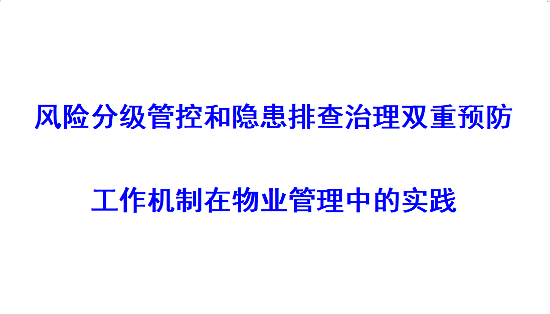 • 風(fēng)險分級管控和隱患排查治理雙重預(yù)防工作機制在物業(yè)管理中的實踐 [2021-01-22]